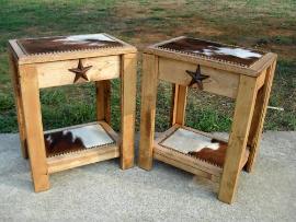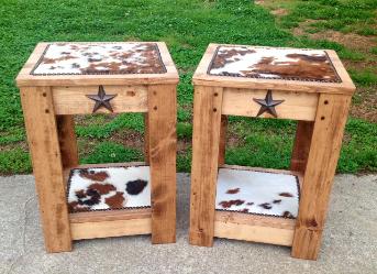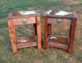 | MEDIUM SIZED END TABLES measures 16" x 16" x 22" tall $150 for hide on top shelf only or bottom shelf only $175 for hide on top and bottom shelf THESE TABLES PACKAGE UNASSEMBLED, YOU CAN SEE IN THE PICTURES WHERE THE SCREWS ARE INSERTED INTO THE LEGS AND BOTTOM SHELF, THESE HOLES WILL BE COVERED W/ PLUGS |