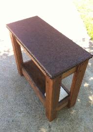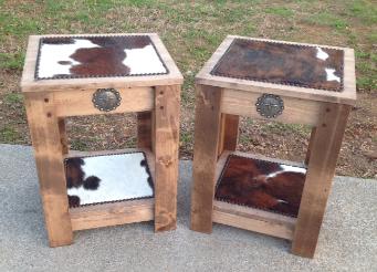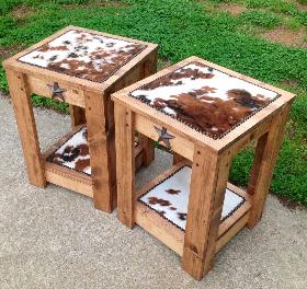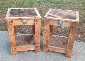 | MEDIUM SIZED END TABLES measures 16" x 16" x 22" tall $150 for hide on top shelf only or bottom shelf only $175 for hide on top and bottom shelf THESE TABLES PACKAGE UNASSEMBLED, YOU CAN SEE IN THE PICTURES WHERE THE SCREWS ARE INSERTED INTO THE LEGS AND BOTTOM SHELF, THESE HOLES WILL BE COVERED W/ PLUGS |