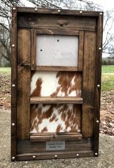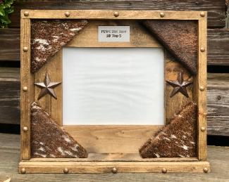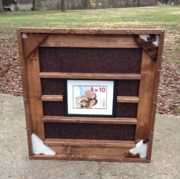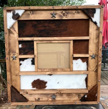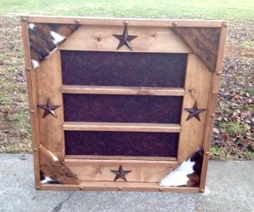 BUCKLE DISPLAY holds 12-14 buckles and an 8x10 photo with cowhide backing and corners $195 27" x 28" x 2.5" FRAME NOW HAS ONE STAR TOP CENTER |