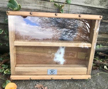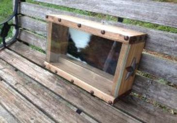 GLASS TOP DISPLAY BOX $48 outside measurements 14" x 9.25" x 5" inside is 3.5" deep, lined with cowhide |