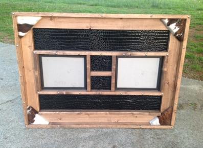 8-9 BUCKLES AND TWO 5x7 PHOTOS $135 overall measurements 27 5/8" x 24 3/8" x 2.5" buckle slots measure (2) 21" and 5" space between photos where a buckle can go |