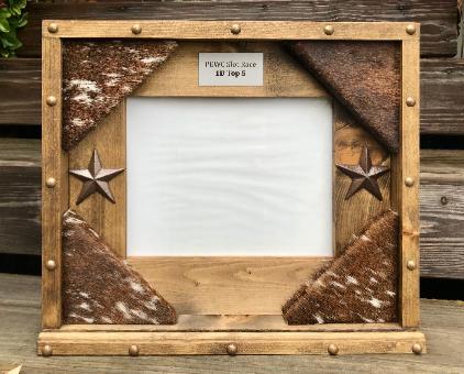 BUCKLE DISPLAY holds 5-6 buckles + 5x7 photo $75 $78.50 includes engraving on a silver or gold metal plate FRAME NOW HAS ONE STAR TOP CENTER |