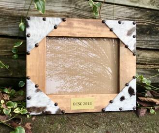 PHOTO FRAME $75 holds 4-5 buckles and two 8x10 photos $78.50 includes engraving on a silver or gold plate at top |