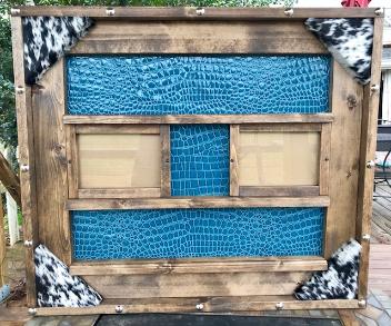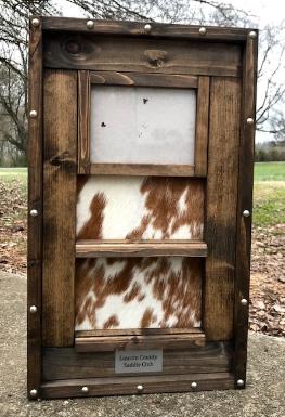 BUCKLE DISPLAY holds 12-14 buckles and an 8x10 photo with cowhide backing and corners $195 27" x 28" x 2.5" |