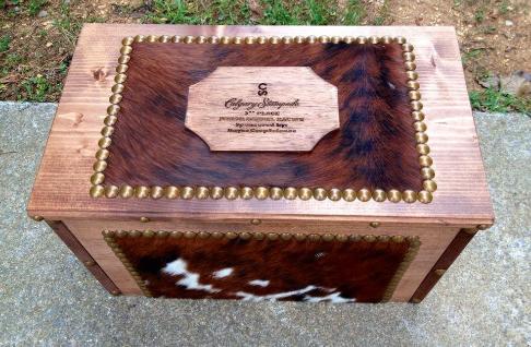 HINGED TOP STORAGE BOX $85 includes engraving on cowhide diamonds as pictured 20" x 11.25" x 12.75" tall |